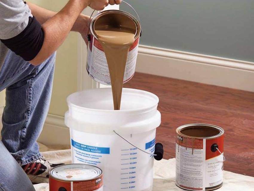 Đổ vecni vào một thùng hay chậu trộn, sau đó từ từ thêm chất pha loãng vào trong khi khuấy đều.