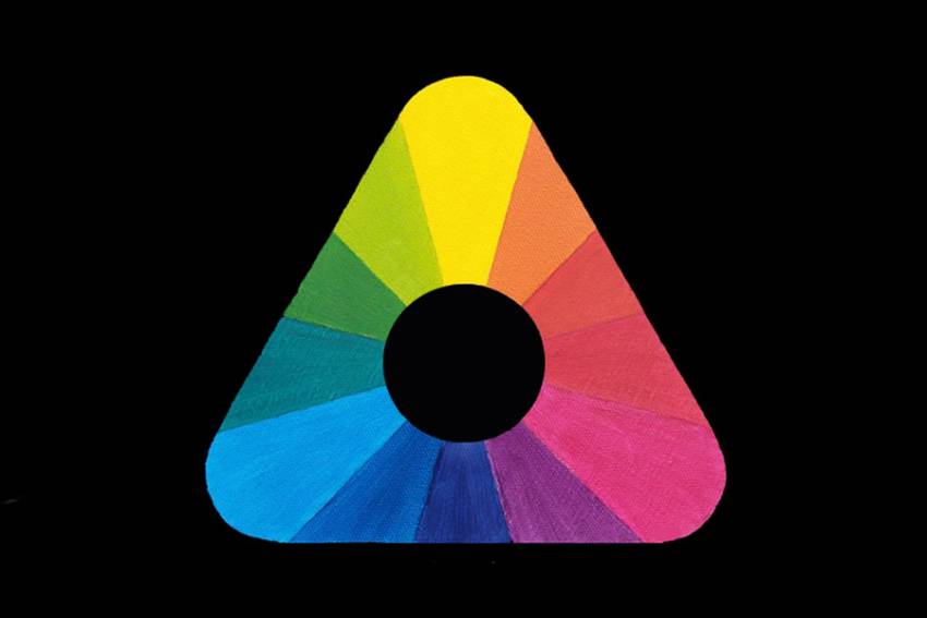 Có 3 màu cơ bản trong biểu đồ là màu xanh lơ, hồng sen, vàng như hình bên dưới. Khi bạn hòa trộn hai màu ở góc hình với nhau thì sẽ thu được các màu ở giữa tùy mức độ đậm nhạt.