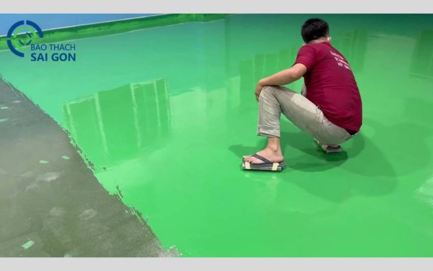 Tiếp theo, thi công lớp sơn lót để tạo sự liên kết giữa bề mặt sàn và lớp sơn phủ tiếp theo. Sơn lót còn có tác dụng ngăn ngừa sự thấm nước và hóa chất vào bề mặt bê tông, giúp bảo vệ sàn lâu dài.
